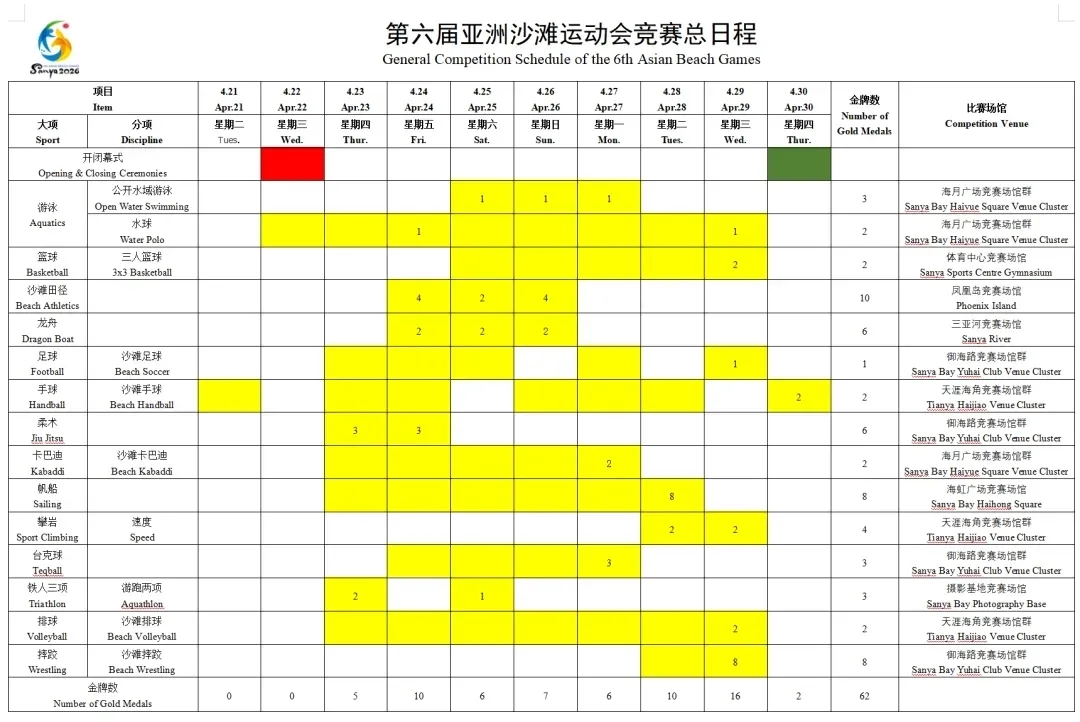 碧水金沙、椰风海韵,海南洋溢着盛会将至的热情。4月22日至30日,第六届亚洲沙滩运动会(以下简称“三亚亚沙会”)将在海南三亚举行。届时,将有来自45个国家(地区)的近1800名运动员齐聚天涯海角,展现沙滩运动的独特魅力。