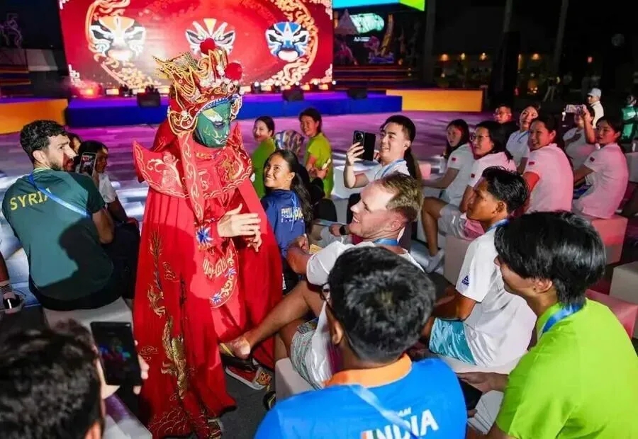 随着各体育代表团选手到来,位于三亚湾红树林度假世界的亚沙会运动员村热闹了起来。4月18日“开村”当天,以“国粹风华”为主题的文化展演活动在文化广场展开,舞龙舞狮、川剧变脸、琵琶演奏等表演吸引了众多运动员关注,不少人还上台参与互动。